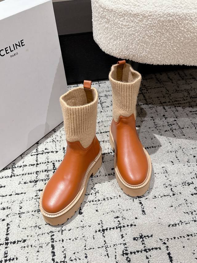 代购级短靴 高靴 Celine 赛琳 2025Ss新款复古厚底短靴马丁靴骑士靴...