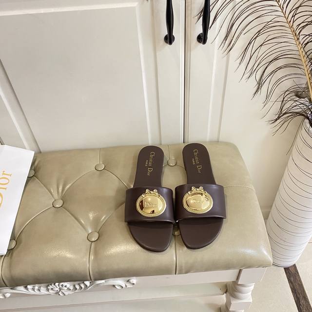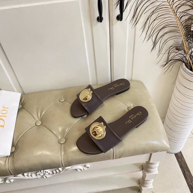 橡胶底 ,真皮底 ,迪奥Dior中跟拖鞋,牛皮面,羊皮里,35-43码 DDD