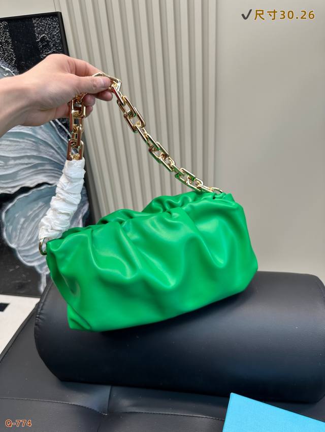 The Chain pouch Dl将Bv爆款云朵包再度升级,搭配大链条的设计真的是又A又温柔,气场爆棚超时髦!链条拆开可手拿可单背,容量也超大,加分百搭又不会出错的一款,实力种草链条云朵包。柔软宽大手拿包,皮革翻折包覆磁性框架,方形环链肩带,单隔层,轻盈小牛皮!尺寸:31 16Cm
