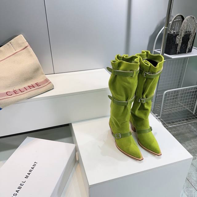 高品质出厂 !顶级品质R13 25秋冬新品慵懒风扣带欧美风粗跟长靴!多种穿法 带子可随意调节 可长可短 可松弛 褶皱靴身自带随性松弛感 金属扣带又添酷飒劲儿 时髦得很野生 一脚蹬出不羁气场 走在路上就是会被追着问的存在~鞋面采用进口牛反绒 进口牛皮内里垫脚进口羊皮意大利进口加厚真皮大底跟高:5Cm码数:35-42 40.41.42定不退换 配原版包装