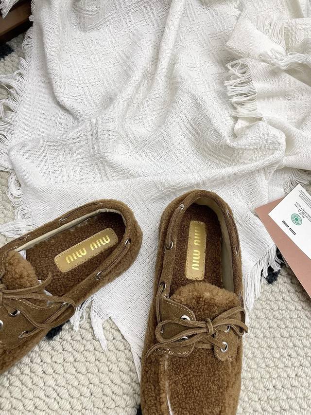 Miu Miu2025新款复古豆豆鞋 独家高版 Miu Mi*2025春款平底Zp开发 原版秒杀市面版本 Miu真的太少女啦!超级软糯 喜欢可以冲了! 鞋面:羊羔毛 大底:原版开模大底 码数:35-39 40.41定制不退不换