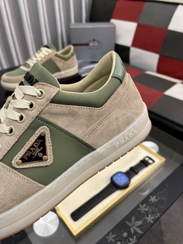 出厂价Pp: Prad*普拉达2025春夏新品男士高端运动鞋,这款运动鞋休闲百搭,选用进口牛皮打造,进口羊皮内里,轻质发泡大底,脚感非常舒适,运用柔和简洁的线条