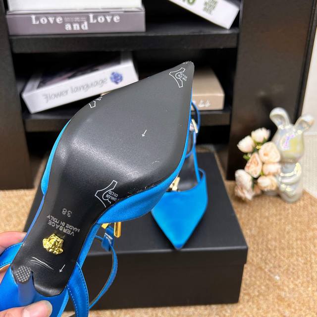 FFF Versace范思哲 6 Gianni Ribbon 美杜莎V扣中空凉鞋 正面饰V型链接扣镶钻 DDD _______________________ DDD 海外热销冠军 DDD Yb一致原鞋开发楦型 各大时尚博主及明星、网红、已经人手一对,如此出众的美,让人过目不忘! DDD DDD Go 材质: DDD 鞋面:真丝布 DDD 内里垫脚:进口优质山羊皮 DDD 跟高:10.5Cm DDD 鞋底:意大利Italy牛皮大底 DDD 码数:- 42定制不退换 DDD 包装:全套原版包装 DDD 等级