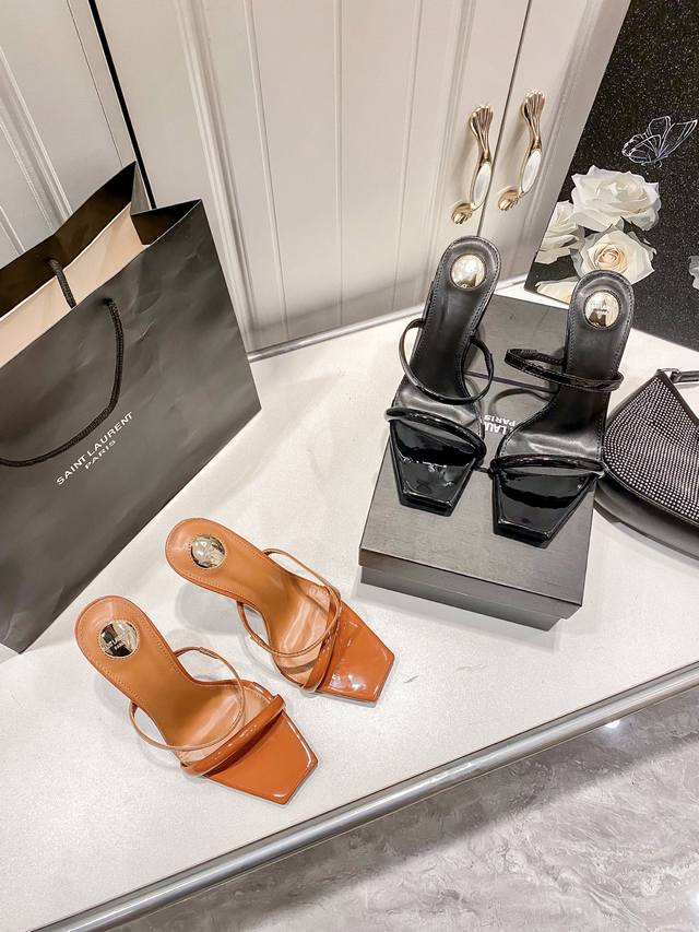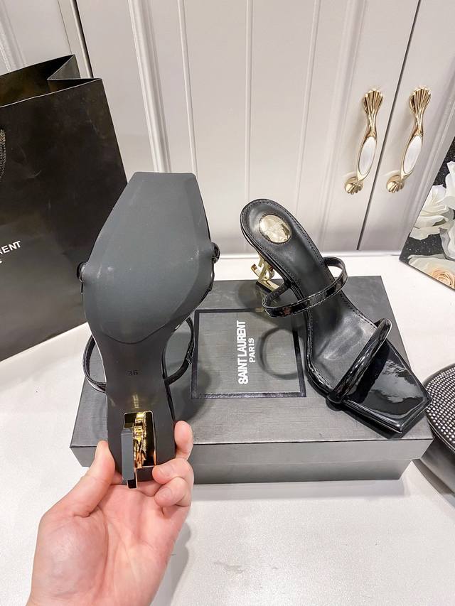 saint Lauren 圣罗兰 初夏新款 Ysl字母跟一字带方头高跟凉鞋